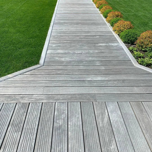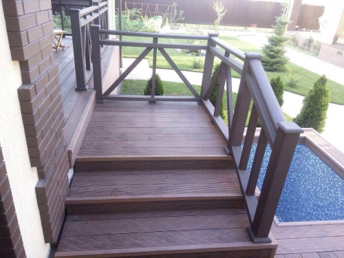 Декинг из древесно-полимерного композита (ДПК) отличаются высокой механической жесткостью, не растрескивается и не гниёт – 100% водостойкость, устойчив низким и высоким температурам (а также резким перепадам), не по вкусу насекомым и грызунам. Декинг может быть обработан обычным инструментом по дереву (легко пилить, строгать, сверлить и т.д), хорошо держит металлический крепеж. Несмотря на более высокую стоимость по сравнению с древесиной в конечном итоге эксплуатация террасной доски из ДПК выйдет дешевле как в денежном выражении, так и в трудовых и временных затратах на его монтаж и эксплуатацию – срок службы составляет 25 лет без необходимости проведения каких-либо косметических или капитальных работ в течение всего жизненного цикла. Террасная доска из ДПК – это эстетика натурального дерева и долговечность современных полимеров.